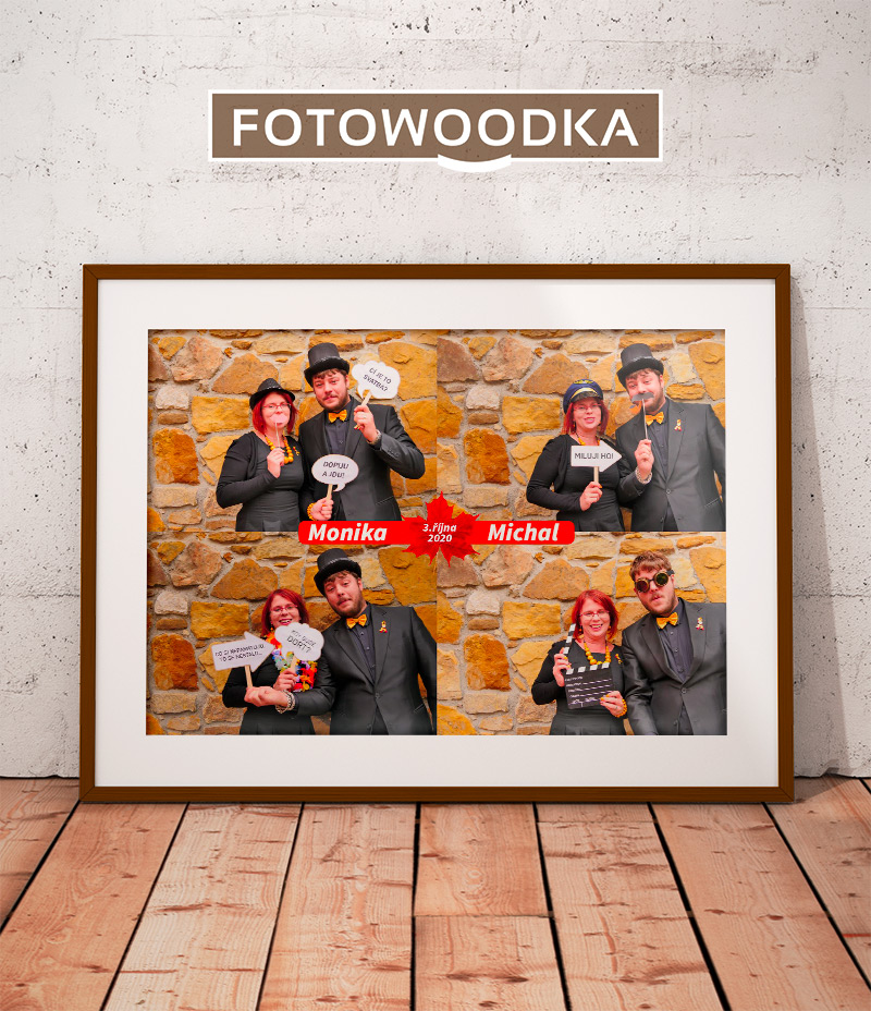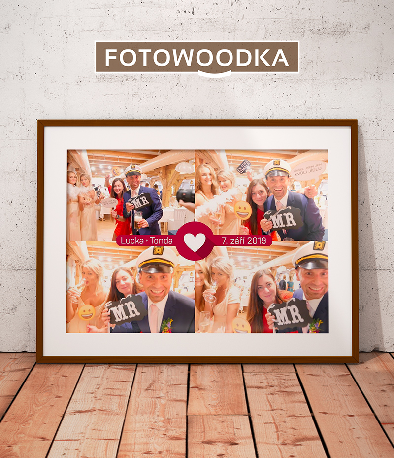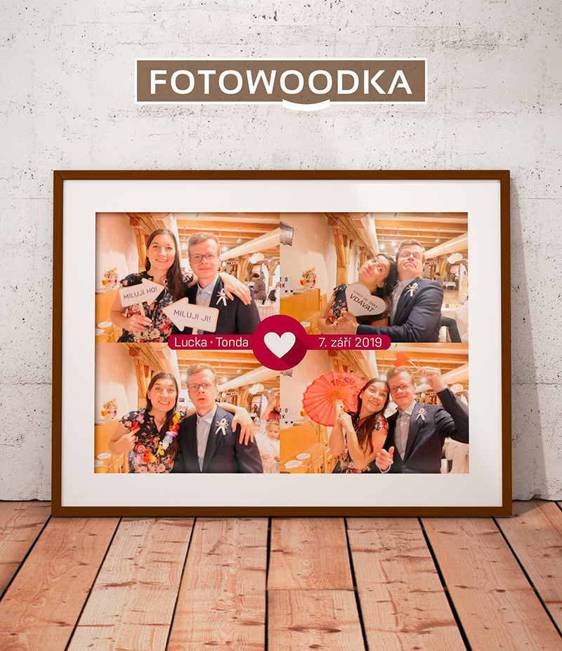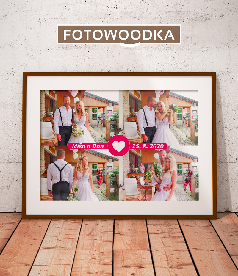 Udělám 4 fotky a složím je do jedné včetně vodoznaku, například s jménem novomanželů a datem.