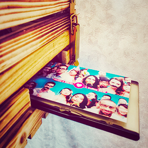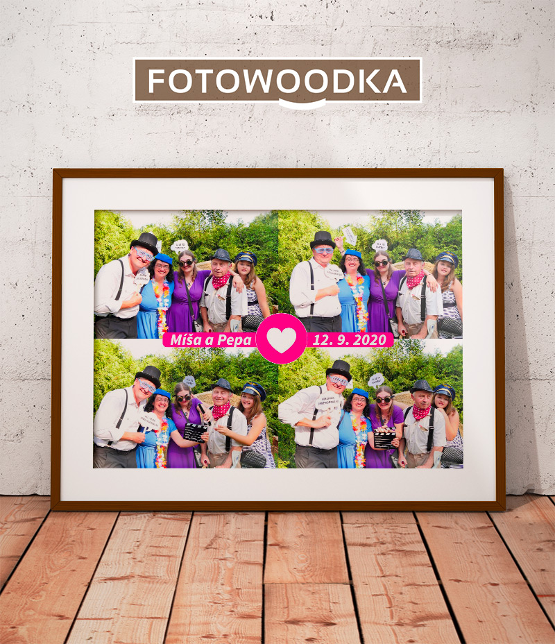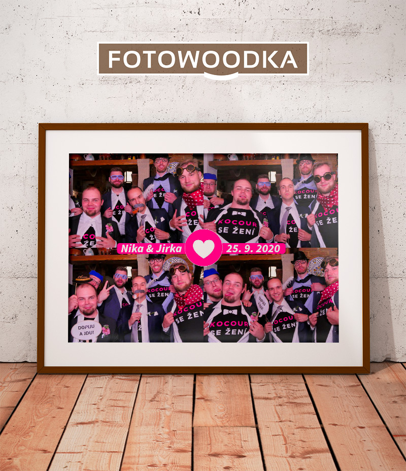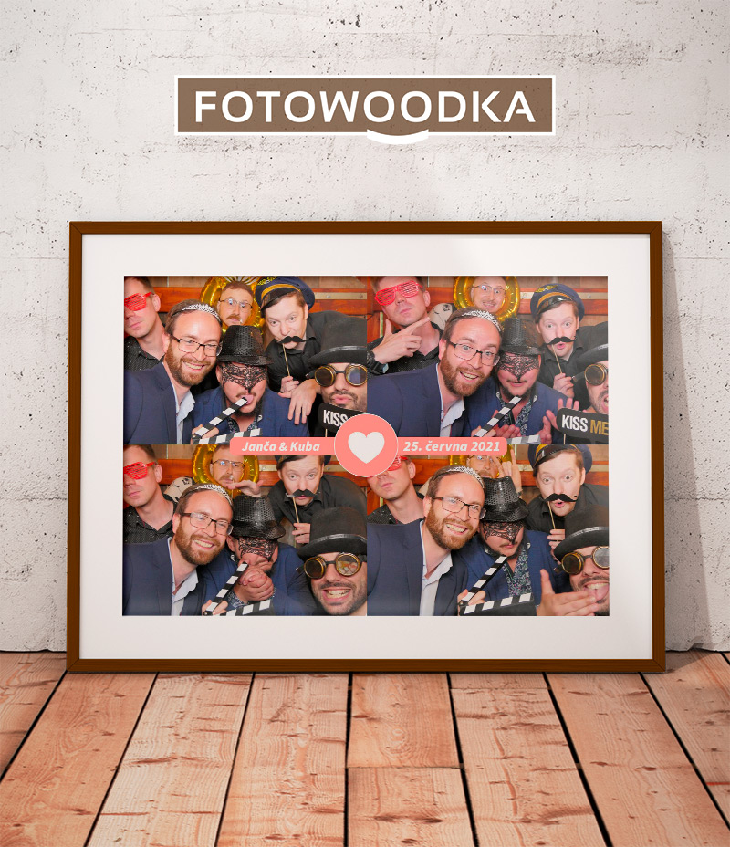 V ceně máte vždy neomezený tisk fotografií 10x15, rekvizity, online galerii a obsluhu fotokoutku. Na fotografii může být vaše grafika, datum svatby nebo třeba monogram.